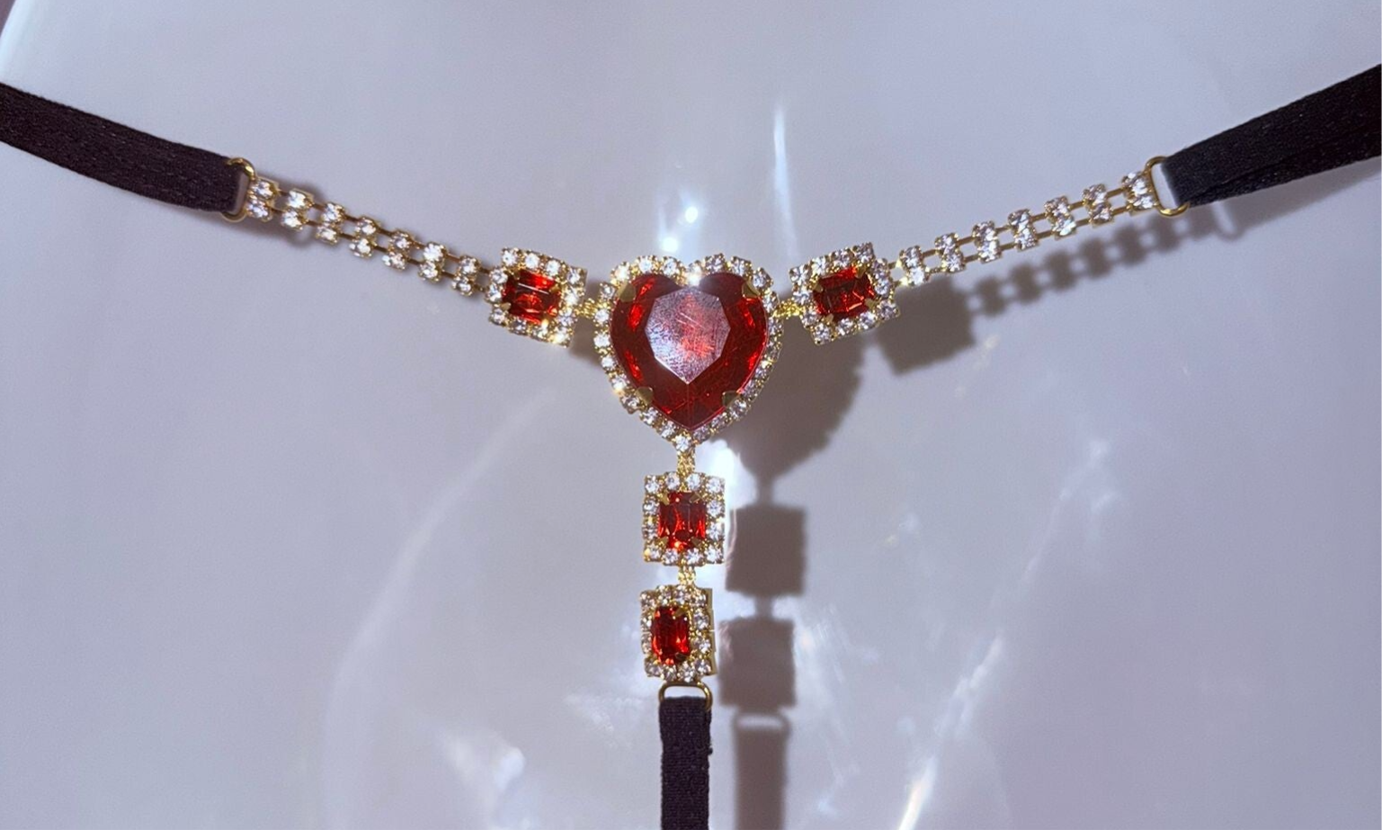 Gorgeous, sexy black thong with amazing red and gold jewel detail to the back.